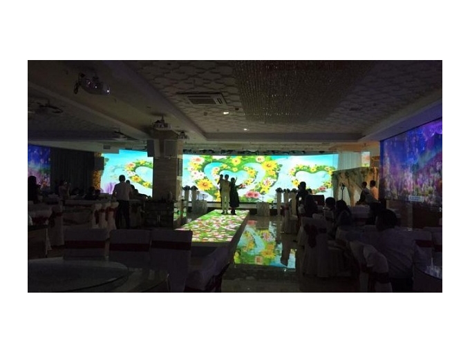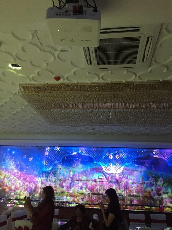 在經(jīng)過多方比較后,酒店最終選擇攜手樂爾麗投影機,共同為新人打造一場“沉浸式”婚禮?,F(xiàn)場共采用20臺樂麗RP-L6200X高亮投影機,通過融合拼接的形式,在宴會廳的正面、兩側以及地面進行大面積投影。流轉的畫面在為新人以及賓客提供了一場視覺盛宴的同時也他們帶來了前所未有的“沉浸式”體驗。
