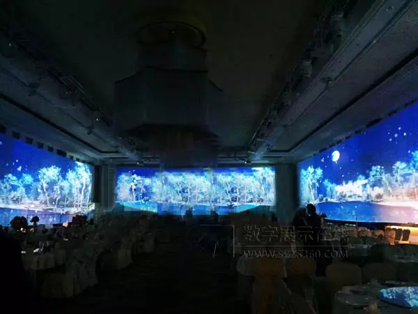 廣州迎賓館升級全息宴會(huì)廳,項(xiàng)目共使用18臺樂爾麗(ROLY)RP-L7000X工程投影機(jī)打造全息270度裸眼3D效果,通過T臺互動(dòng)、舞美道具、婚紗投影、燈光、音響、聲光電等科技元素相互配合,以觸控選擇模式,呈現(xiàn)出沉浸式效果視覺盛宴,原始森林、海底世界、浪漫花海、實(shí)現(xiàn)各個(gè)場景的瞬間切換置身其中。