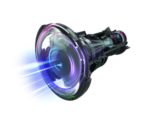 針對3LCD投影機(jī),獨(dú)家開發(fā)0.5短焦鏡頭,具備承受7000流明高亮度,匹配WUXGA高分辨率,通光率高,光衰低于10%,最高投影尺寸可達(dá)300寸。