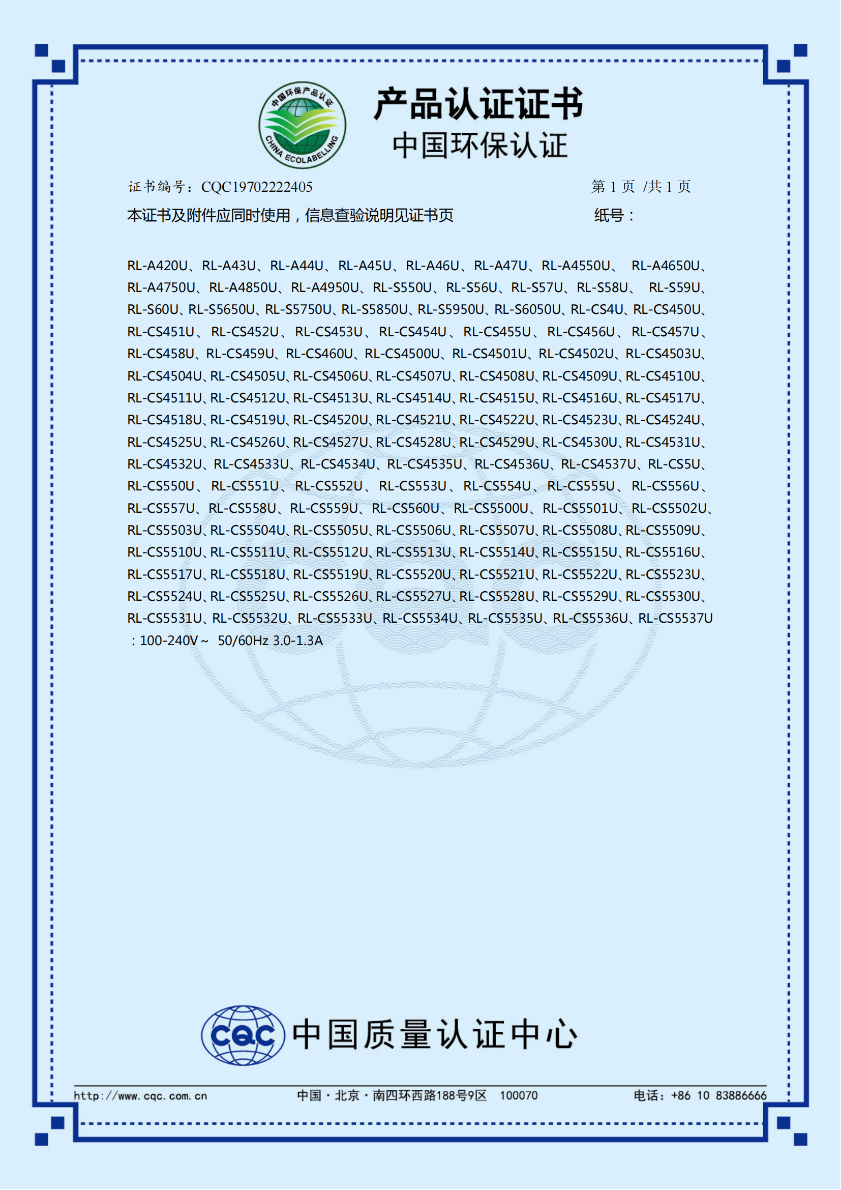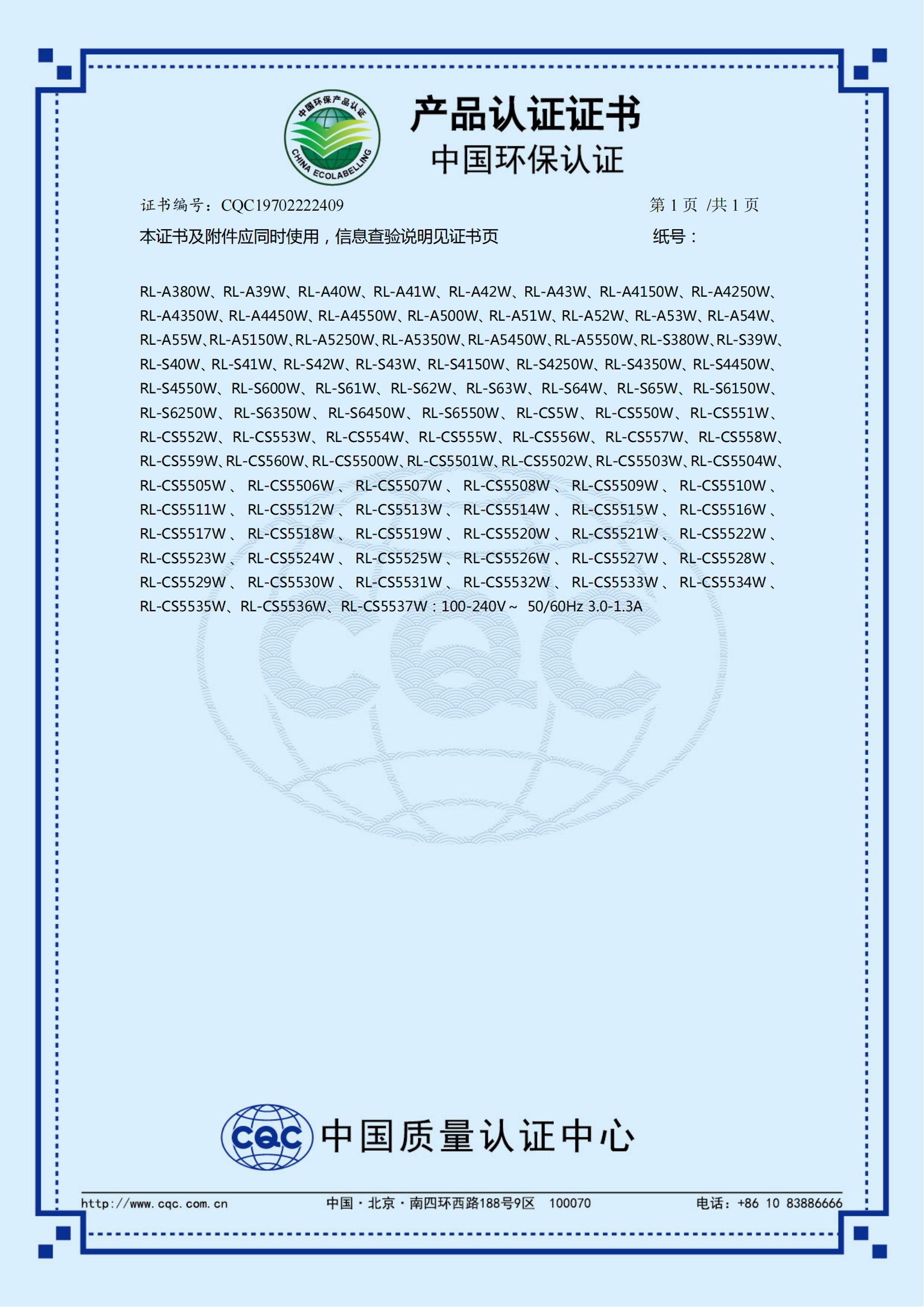中國(guó)環(huán)保產(chǎn)品認(rèn)證書(shū)