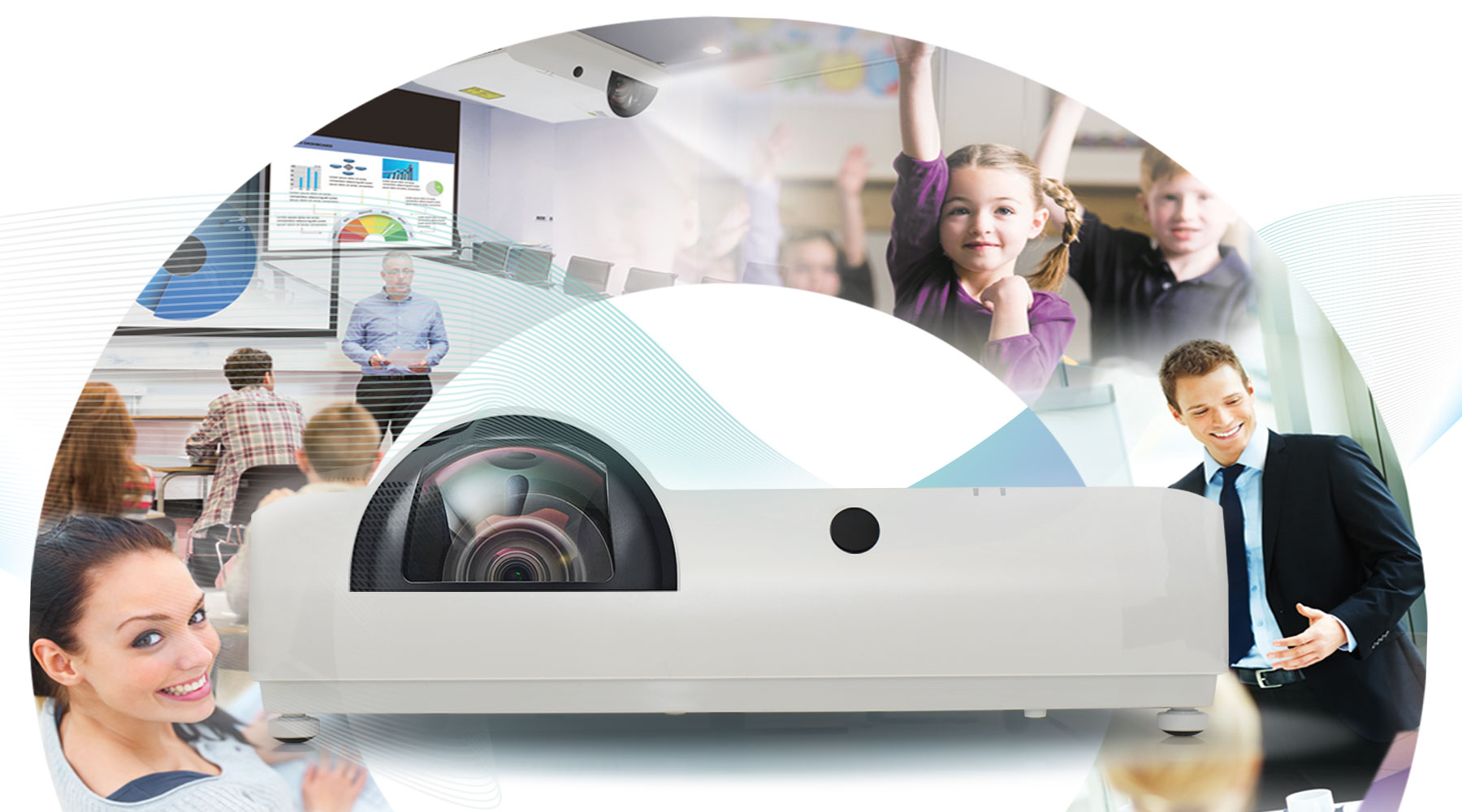 搭配短焦魚眼鏡頭,任何教育空間都能呈現(xiàn)大畫面安裝靠近屏幕,避免強光直射干擾或教師遮擋光線